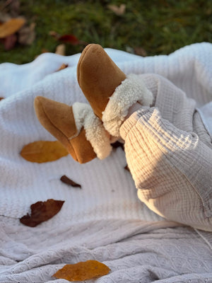 So cozy for tiny feet, beautiful quality and good fit. 🤎